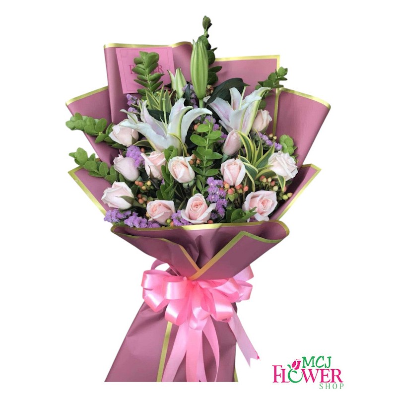 A pink rose soft as a whispered promise meets the fierce beauty of a stargazer lily — together, they bloom like a love story written in color. Gentle meets powerful, delicate meets daring, and in their union, the whole bouquet becomes a heartbeat you can almost feel.
