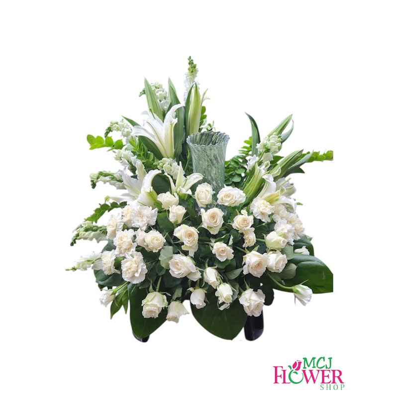 Urn Funeral Arrangement, Gone but not forgotten, Free Delivery within Metro Manila / All white flowers / Funeral